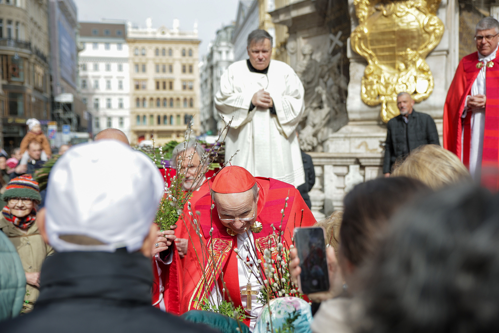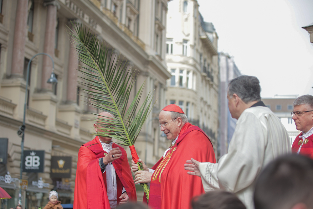 Traditionell werden am Palmsonntag, eine Woche vor Ostern, in der Wiener Innenstadt die Palmkätzchen von Kardinal Christoph Schönborn gesegnet. Die Palme ist ein Symbol des Sieges und steht im Christentum für das ewige Leben. Wir waren mit der Kamera dabei.